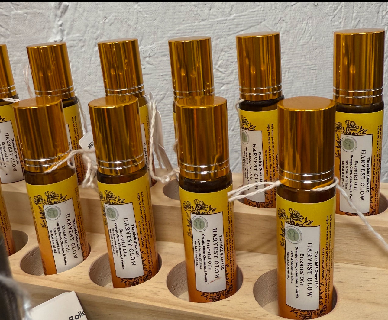 Warm and spiced like autumn itself, Harvest Glow blends sweet orange, clove, cinnamon, and vanilla in a jojoba oil base. This cozy fragrance captures the heart of fall — bright citrus, gentle spice, and creamy sweetness — uplifting the spirit while wrapping the senses in comfort. Perfect for crisp mornings, seasonal gatherings, or carrying a touch of fall with you every day.